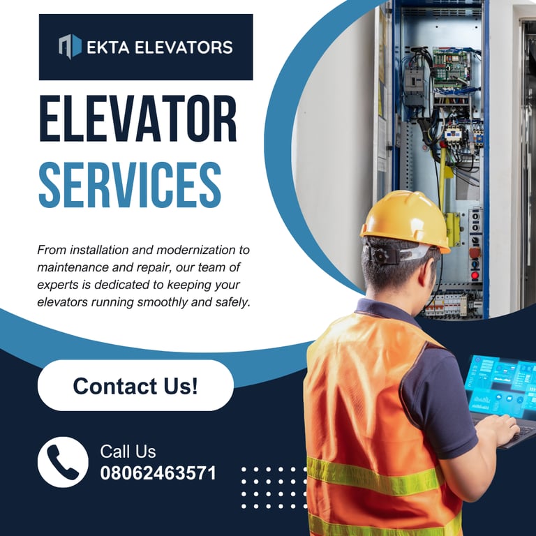 Ekta Elevators, located in Uttam Nagar, is a trusted name in lift and elevator services, specializing in installation, maintenance, and repairs. With a commitment to quality and safety, we provide reliable elevator solutions for residential, commercial, and industrial spaces. Our expert team ensures smooth and efficient operation, delivering top-notch service tailored to your needs. Whether you need a new installation or regular maintenance, Ekta Elevators guarantees excellence and durability in every project. Choose us for seamless mobility and unmatched service reliability.