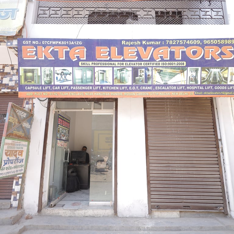 Ekta Elevators, located in Uttam Nagar, is a trusted name in lift and elevator services, specializing in installation, maintenance, and repairs. With a commitment to quality and safety, we provide reliable elevator solutions for residential, commercial, and industrial spaces. Our expert team ensures smooth and efficient operation, delivering top-notch service tailored to your needs. Whether you need a new installation or regular maintenance, Ekta Elevators guarantees excellence and durability in every project. Choose us for seamless mobility and unmatched service reliability.